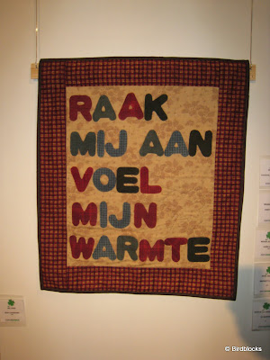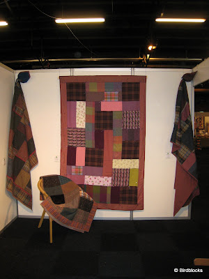 Oh, die tweed-quilts, ik krijg meteen zin om nog een Work in Progress aan mijn lange, lange lijst toe te voegen. Het klopt wat er op dat eerste quiltje staat, het ziet er heerlijk warm uit en je krijgt spontaan zin om de quilts te bevoelen, ik vraag me alleen af of ze niet zwaar zijn. Als ik het goed zie is ook (bijna) geen enkele quilt voorzien van een tunnel, dus ze worden niet opgehangen door de maker/gebruiker.Ze liggen dus op bedden, maar zou dat als sprei zijn, of als deken?