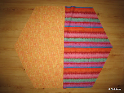 Lekkere frisse kleurtjes, daar houd ik van en in de winter zeker, dan heb ik ze gewoon nodig, dus buitenkant is een kleurrijk Kaffe Fasset stofje (Mirage stripe) met een heerlijke zonnige binnenkant van Lakehouse (Teeny tiny flowers) en doorgequilt met bloemetjes...