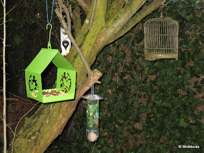 Mijn vorige, houten, voederhuisje had het begeven, de ophanghaak was uit het dakje gerot en de boel hing toch al alleen nog van liefde aan elkaar, dus toen hij op de grond terecht kwam....